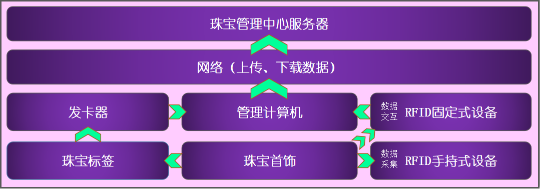 RFID智慧珠寶管理系統的建設,將RFID技術貫穿于珠寶管理從入庫到完成銷售的各個環節。企業可以根據自身業務特點,在關鍵節點部署RFID系統。