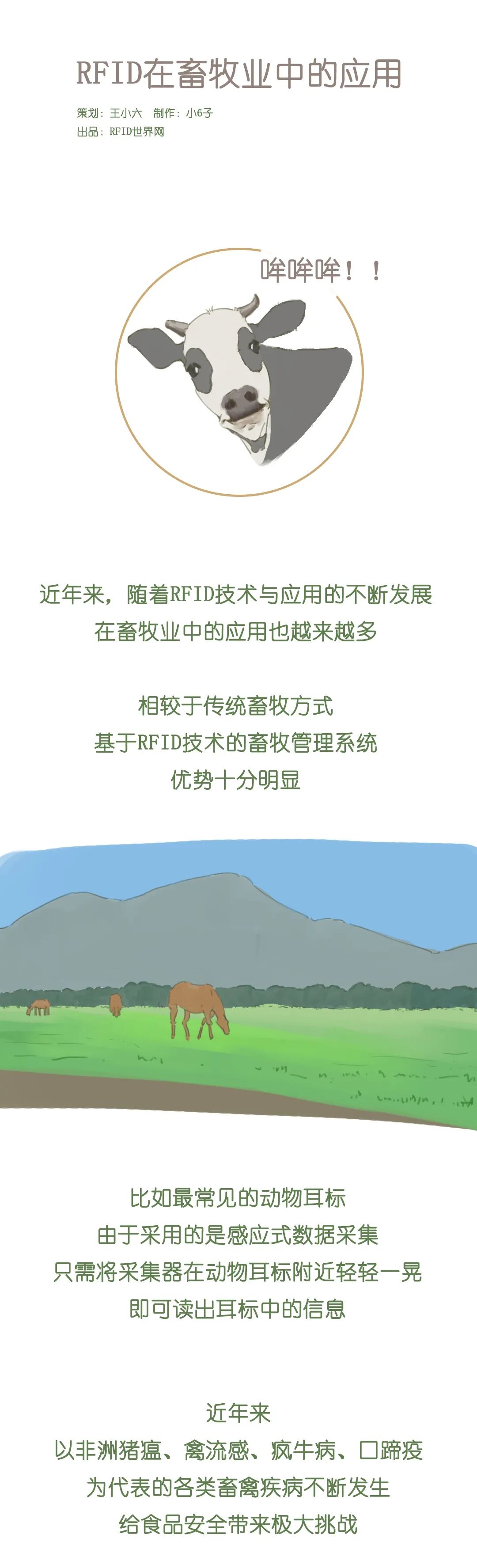 不過應當指出的是,低頻 RFID 無法進行群讀的缺點,在動物快速盤點的應用中有一定限制。有些動物標簽的需求是希望對牛羊等牲畜在遷移牧場時進行快速的盤點,這類場景目前用超高頻 RFID 比較多。但這并不影響低頻 RFID 在動物標簽領域的推廣。