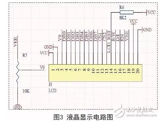 顯示電路如圖3,采用12864液晶屏,使用該點陣的中文字庫,顯示我們在實際使用場景中的對客戶和對自己的同一操作的統(tǒng)一可視化操作。
