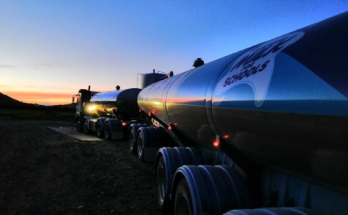 遠遠地,只見身披藍色天空和碧綠草地的恒天然奶罐車穿梭駛來。聽說奶罐車的外形設計很有講究!白天車身背景是藍天和綠草,充分代表新西蘭特色。夜晚車身背景轉換成月亮和星星,300米開外依然醒目可見!為夜晚行駛的司機們增添一道安全防線。連奶罐車的外觀設計都如此細致完善,科學合理,“專業”真是體現在方方面面!