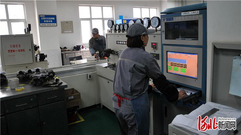 10月15日,在中車石家莊車輛有限公司現代貨車鉤緩制動組裝數字化車間制動閥檢修線內制動工位,高級技師李彬正在檢修制動閥。