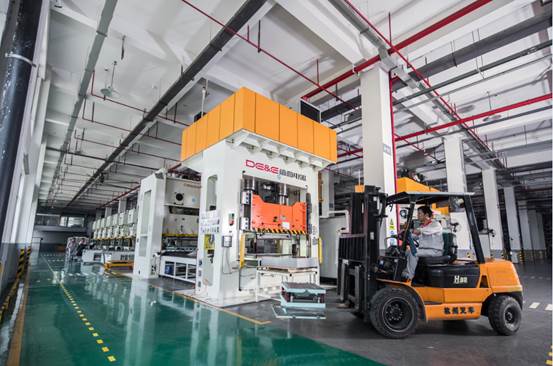 在布局上,智慧工廠生產車間共有三層。一樓為鈑金車間、模具及原材料智能立體庫;二樓為涂裝車間及原材料智能立體庫;三樓為成品組裝車間。在這里,德意的產品從原材料,經由一道道標準、嚴格的工藝流程,最終變為成品送到千家萬戶。