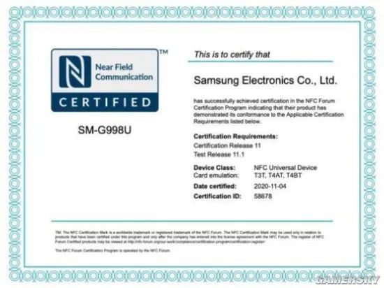 此番現(xiàn)身也意味著Galaxy S21 Ultra已經取得了NFC認證。